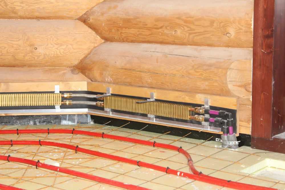 В процессе построения плинтусного отопления применяется специальная трубка из пластика. Благодаря этому элементу теплоноситель доставляется к радиаторам, а также отводится от них. Часть отопительного контура кладется в пол и проводится через стены, а при помощи наружной гофротрубы (которая покрывает внутреннюю) можно без вскрытия пола заменить внутреннюю трубку, которая проводит носитель тепла.